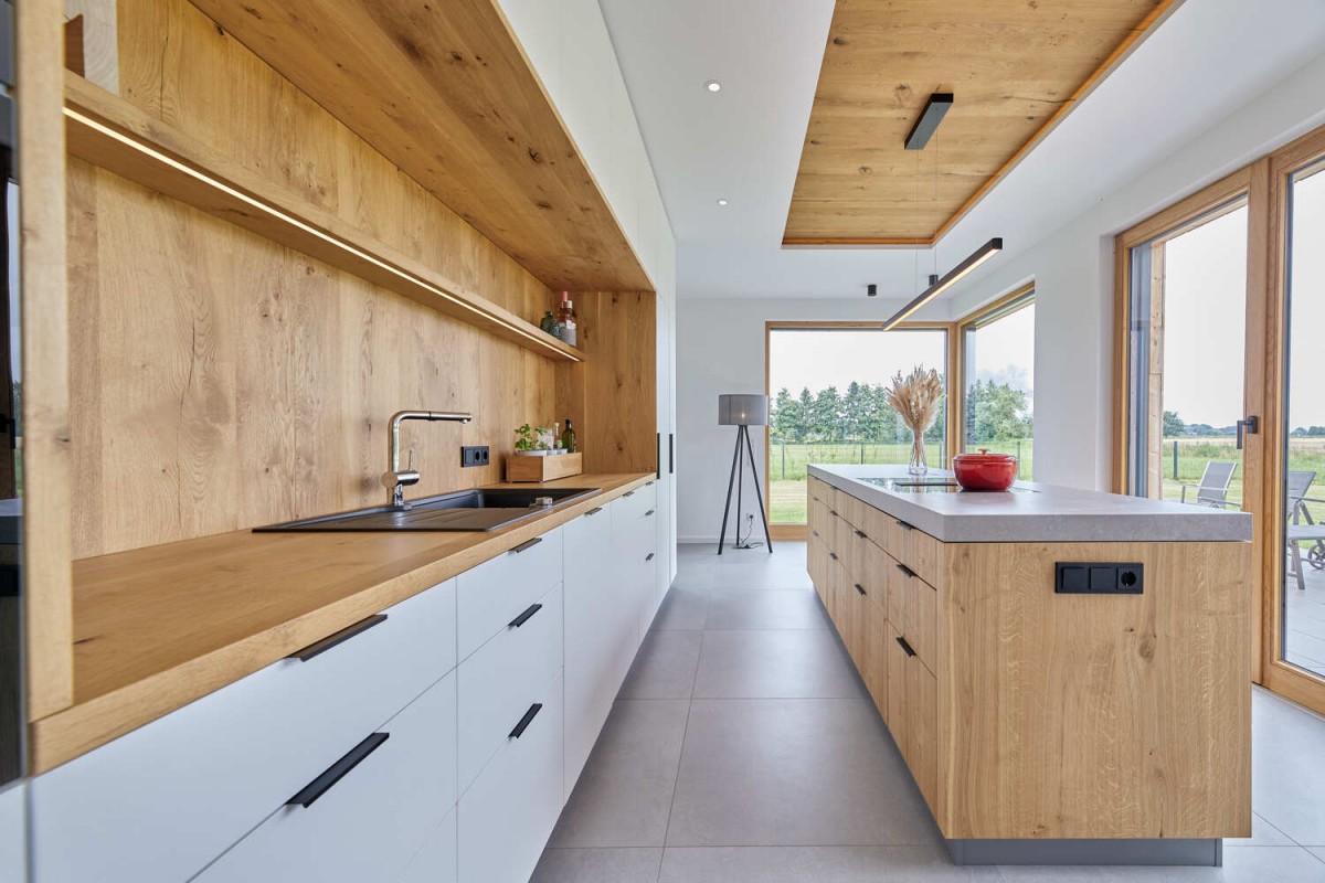 Küche || gemütliche Hölzer und mineralische Flächen